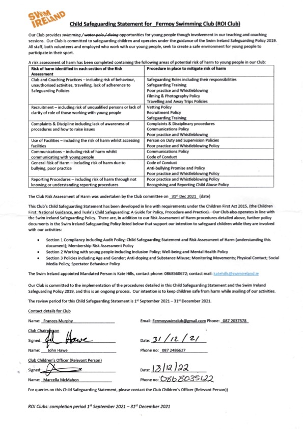 Swim Ireland Club Member Data Privacy Notice